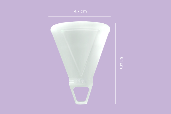 Phia Cup is 4.7cm in diameter, 6.1cm long, and holds 28ml of fluid. Phia Cup has been tested by a variety of women, including women who have and haven't given birth. Through tester feedback, we found that this size works best for both groups. Phia Cup is as close to a "one size fits all" size as possible.